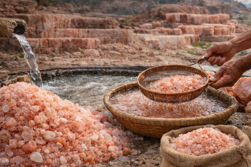 Our journey begins deep within the Khewra Salt Mines, the world’s oldest and most renowned source of Himalayan Pink Salt. Only the finest salt crystals are handpicked by experienced miners under safe and sustainable extraction practices — ensuring minimal environmental impact and maximum purity.